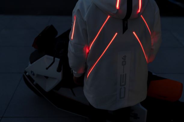 BMW ha anche progettato attrezzature speciali per i conducenti. Al centro è un caldo parka con protezioni flessibili. Le guide luce nei manicotti e nel cappuccio offrono una maggiore visibilità nel traffico stradale e possono essere accese e cambiate di colore tramite sensori nel manicotto.
