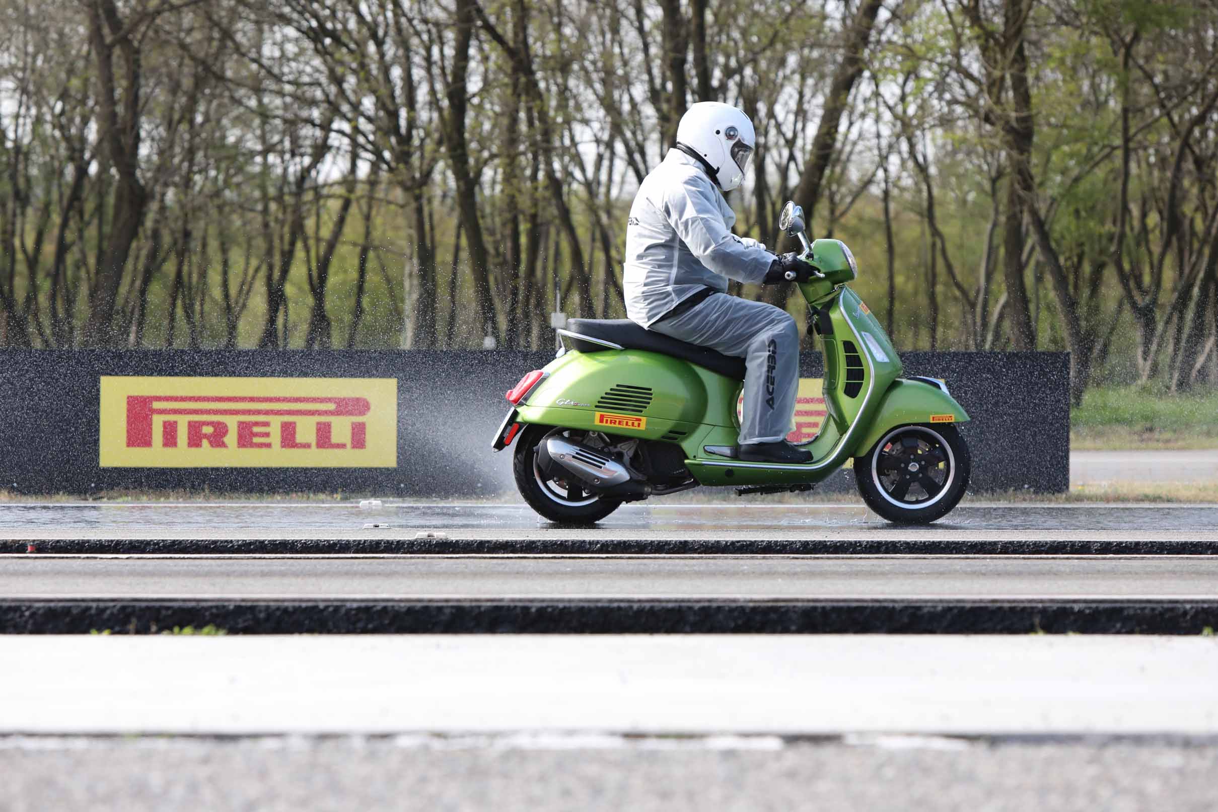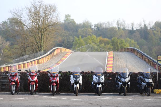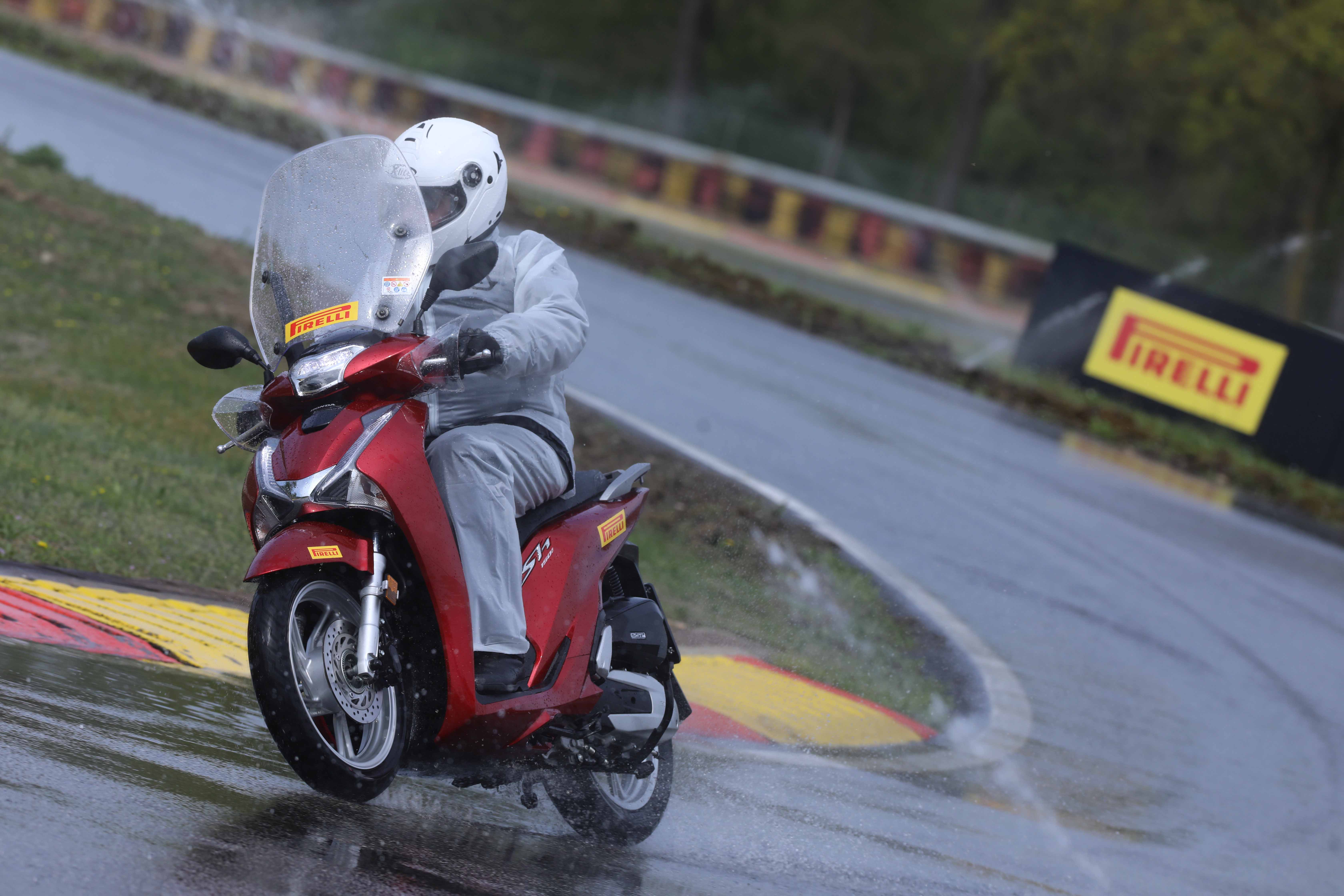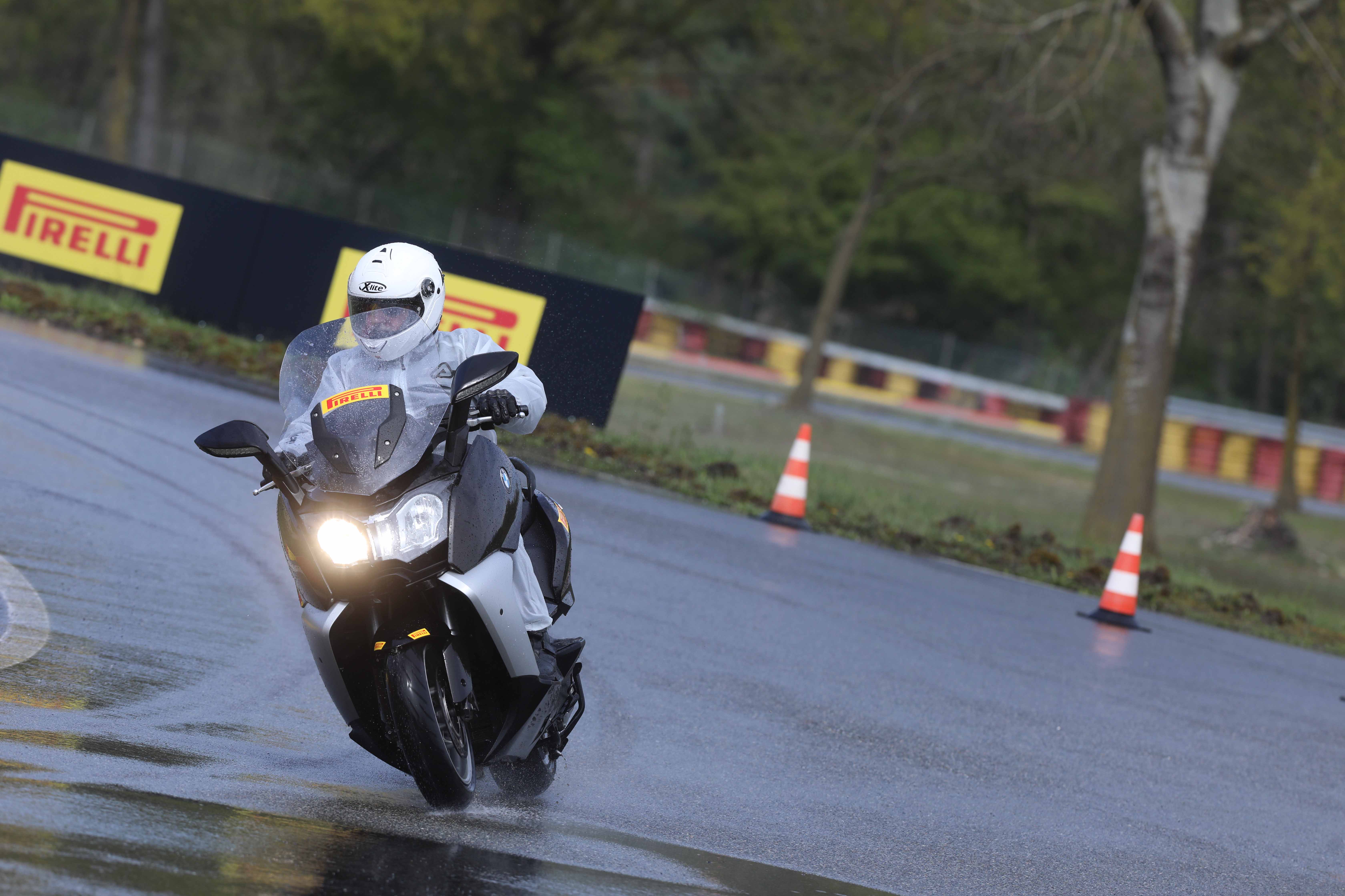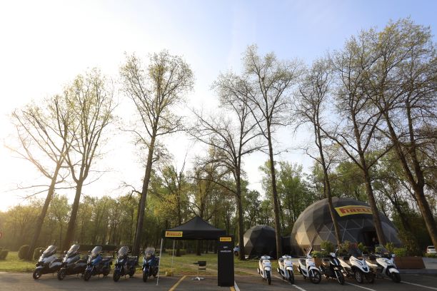Die dynamischen Sessionen mit Scootern und Big-Scootern mit den neuen, für diese Fahrzeugtypen entwickelten Reifen Angel und Diablo Rosso wurden in der modernen und gut ausgestatteten Pirelli-Anlage in Vizzola Ticino durchgeführt. Diese Teststrecke verfügt über alle erdenklichen Straßenbeläge, mit denen ein moderner Scooterfahrer konfrontiert sein könnte. Natürlich gibt es sowohl Hochgeschwindigkeitsabschnitte als auch mit modernsten Bewässerungssystemen ausgestattete Regenstreckenabschnitte.
