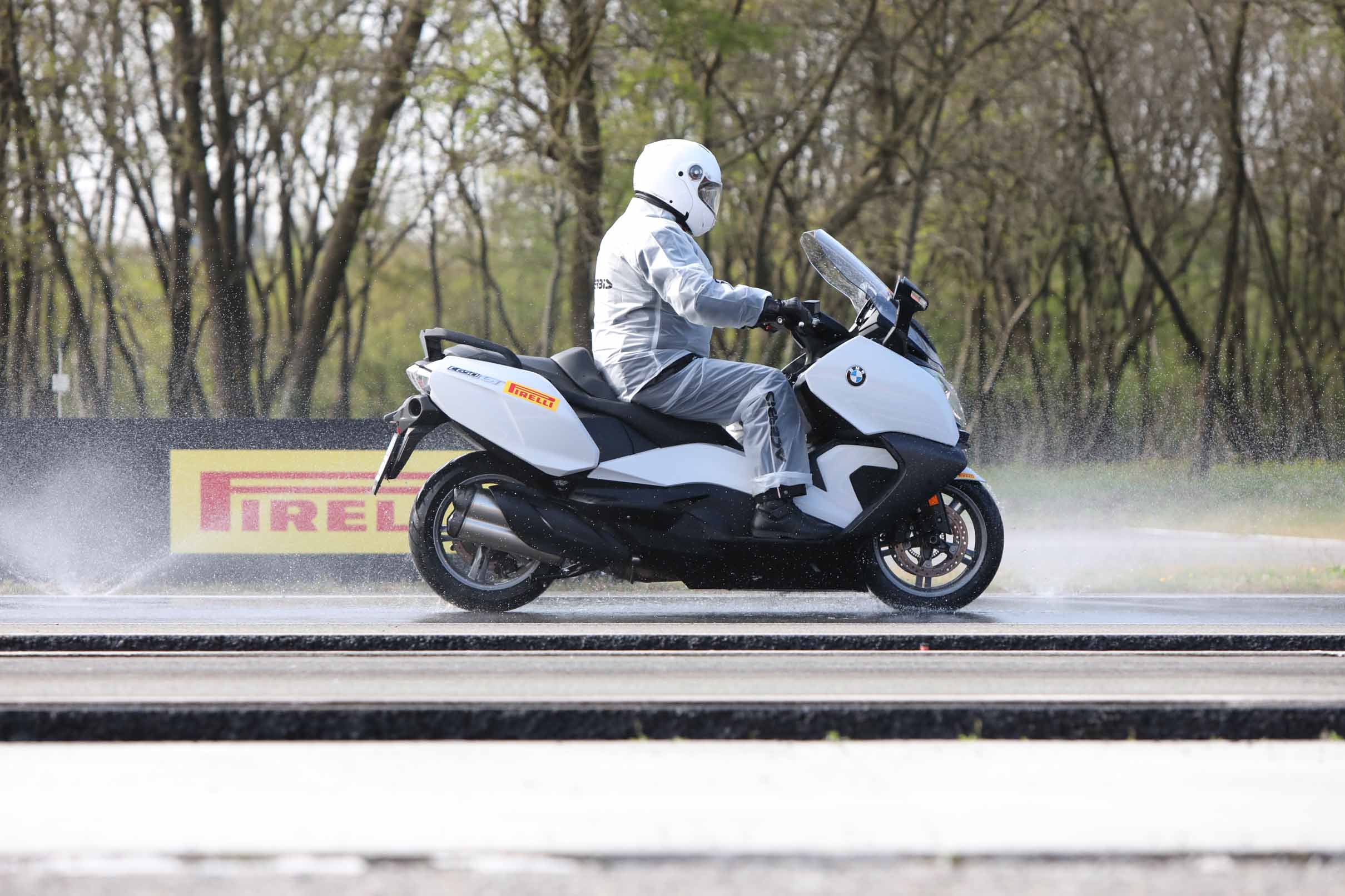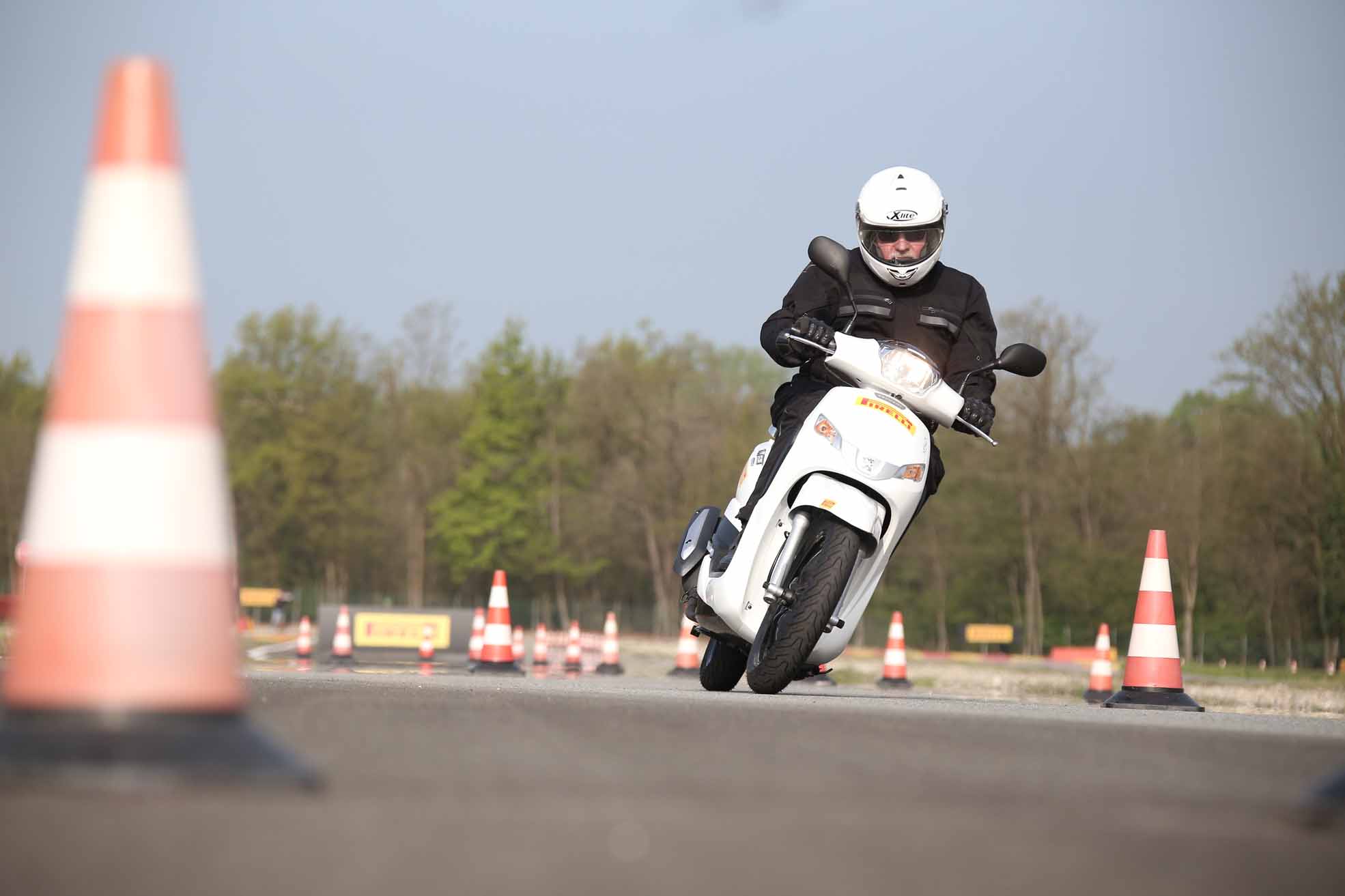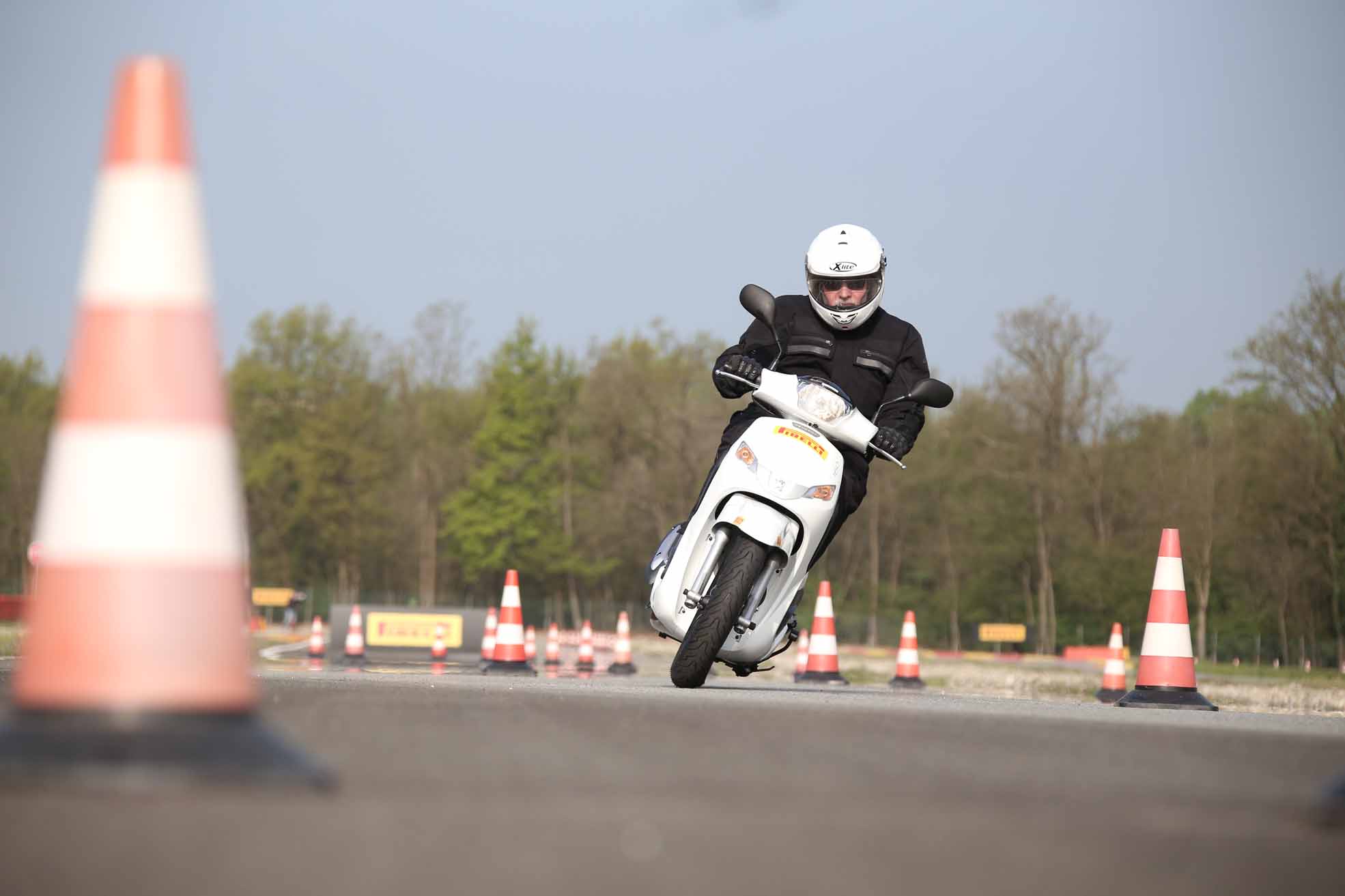 Die dynamischen Sessionen mit Scootern und Big-Scootern mit den neuen, für diese Fahrzeugtypen entwickelten Reifen Angel und Diablo Rosso wurden in der modernen und gut ausgestatteten Pirelli-Anlage in Vizzola Ticino durchgeführt. Diese Teststrecke verfügt über alle erdenklichen Straßenbeläge, mit denen ein moderner Scooterfahrer konfrontiert sein könnte. Natürlich gibt es sowohl Hochgeschwindigkeitsabschnitte als auch mit modernsten Bewässerungssystemen ausgestattete Regenstreckenabschnitte.