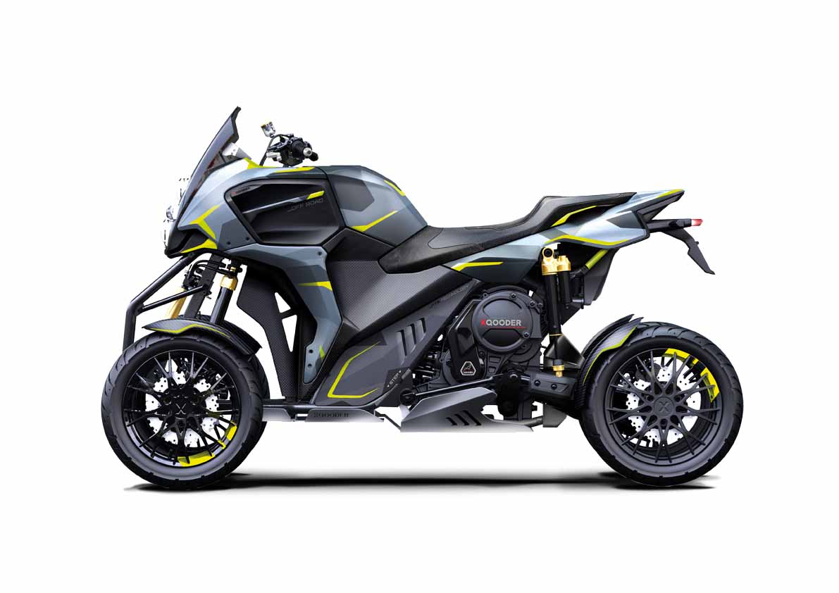 Qooder, das einzige 4-Rad der Welt, das das Beste aus der Welt der Autos und der Motorräder miteinander verbindet, ist die Speerspitze des Schweizer Unternehmens: Sicherheit und Komfort für eine sportliche und reibungslose Fahrt. Zu seinen Besonderheiten zählt der doppelte Hinterradantrieb mit mechanischem Differential und integriertem Bremssystem auf 4 Rädern.