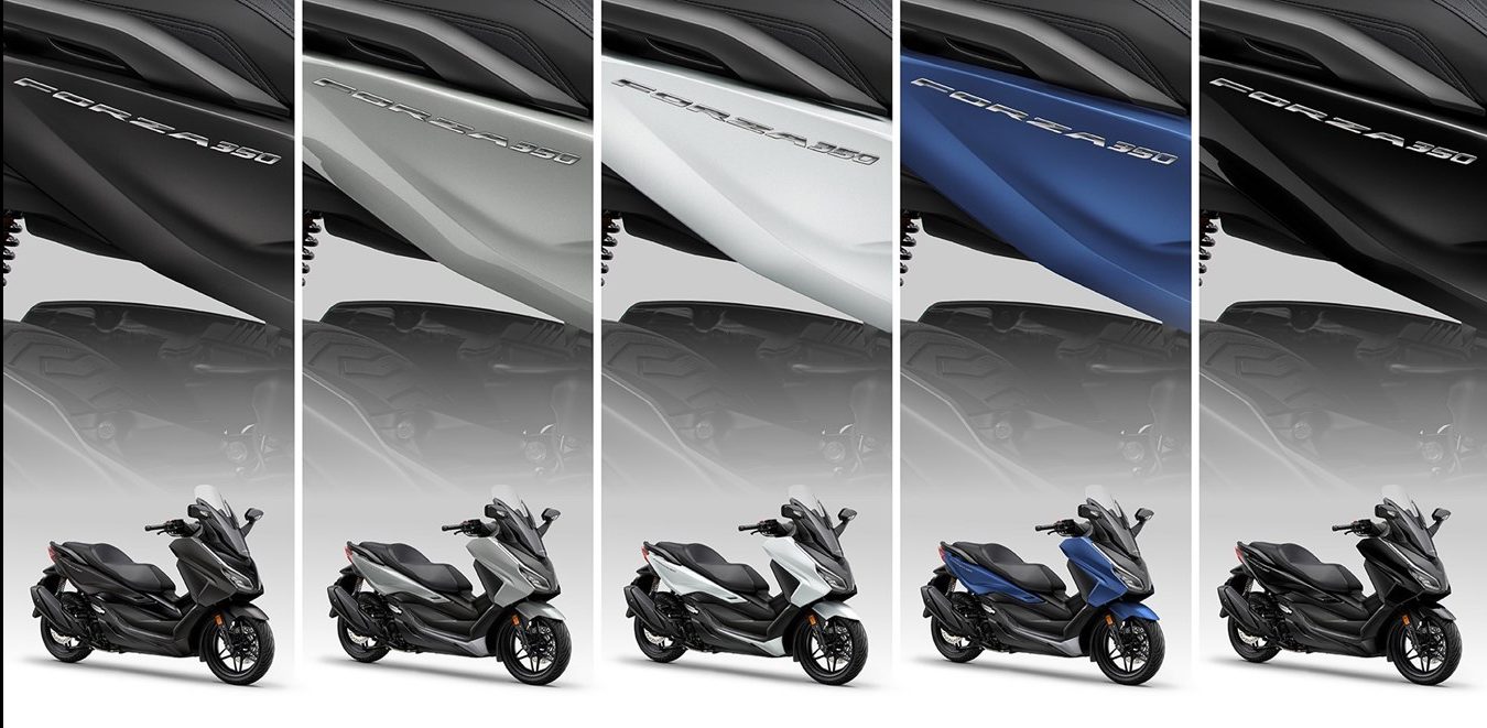 Forza 350 – Der mittelgroße Gran-Tourismo-Scooter von Honda fährt nach dem letztjährigen Design-Facelift mit zwei neuen Lackkleidern und einer neuen Farbkombination ins Modelljahr 2024. Der Forza 350 glänzt weiterhin mit dem sparsamen eSP+ Triebwerk, sicherheitsfördernder HSTC-Traktionskontrolle, elektrisch verstellbarer Windscheibe, Stauraum für zwei Integralhelme, USB-Ladebuchse, LED-Lichttechnik und Smartkey-Bedienung. Punkto Konnektivität verbindet der Forza 350 seinen Fahrer über die Honda RoadSync-App drahtlos sowohl mit IOS- als auch mit Android-Smartphones.