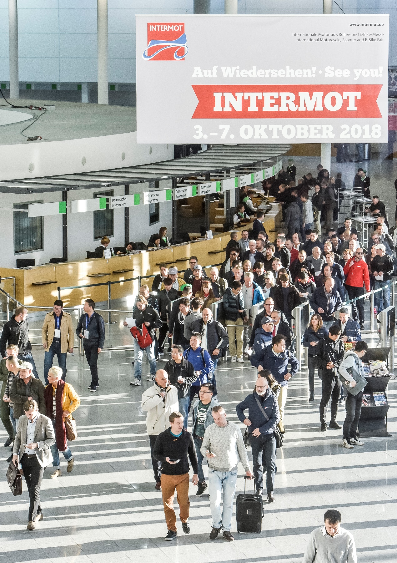 Vom 3. bis 7. Oktober 2018 werden auf dem Gelände der Koelnmesse die neuesten Motorräder, Roller, Elektrofahrräder sowie die wichtigsten Neuheiten aus den Bereichen Elektromobilität, Zubehör, Bekleidung, Teile, Customizing, Reisen und Werkstattausrüstung vorgestellt. Dabei belegt die INTERMOT Köln eine Ausstellungsfläche von rund 100.000 m² sowie das Freigelände mit rd. 60.000 m².