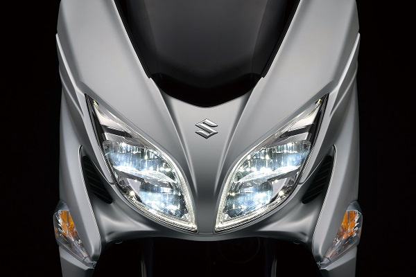 LED-Scheinwerfer, Positionslichter und Rückleuchten sowie die LED-Doppelscheinwerfer vervollständigen eine sauber aussehende Front, die sofort als BURGMAN 400 erkennbar ist.