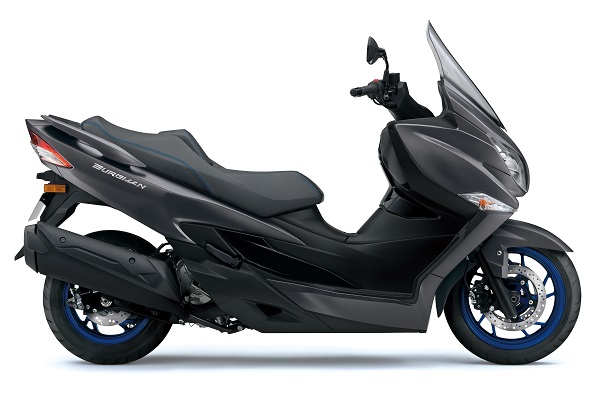Der neue Scooter ist in Grau, in Schwarz sowie in einer neuen Farbvariante erhältlich. Für die neue Farbe „Metallic Mat Sword Silver“ des BURGMAN 400 wurde ein mattes Finish gewählt, das die sportlich[1]elegante Optik zusätzlich unterstreicht. Das ikonische Blau der Felgen ist auch bei Suzukis Sportmodellen zu finden und vermittelt einen smarten, sportlichen Eindruck.