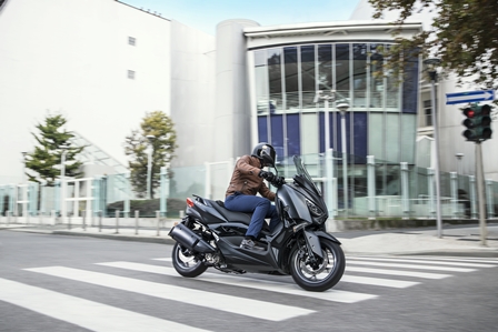 YAMAHA XMAX – Mit mehr als 370.000 seit 2005 verkauften Fahrzeugen erweitert sich die XMAX-Familie mit einer Spezialversion in Bezug auf Ausstattung und Farbe. Das Modell nennt sich Iron Max und verfügt über eine neu gestaltete Sitzbank mit integrierter Rückenlehne für den Passagier. Fahrer-Fußstützen aus Aluminium, verchromtes Profil des Tachos und Rauchglas an der Rücklichteinheit, sowie Ledereinsätze an der Rückseite des Frontschilds. Neue Logos unterstreichen die neue Farbgebung Sword Grey der Verkleidung. Beibehalten wurden das Sitzbankfach für zwei Integralhelme, Smart Key und Traktionskontrolle.