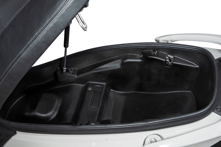 KYMCO – Keine Reichweitensorgen mehr mit dem iONEX Kymco. Die beiden, dank der Smart Bay leicht herausnehmbaren Kompaktbatterien sind im Boden untergebracht. Daraus ergibt sich ein extrem niedriger Schwerpunkt und das Fach unter dem Sattel bleibt sehr geräumig. Der Raum, der normalerweise von den mechanischen Baugruppen für die thermische Traktion belegt wird, wird durch die Schaffung anderer Räume optimiert. Die Batterien (jeweils 5 kg mit je 40 km