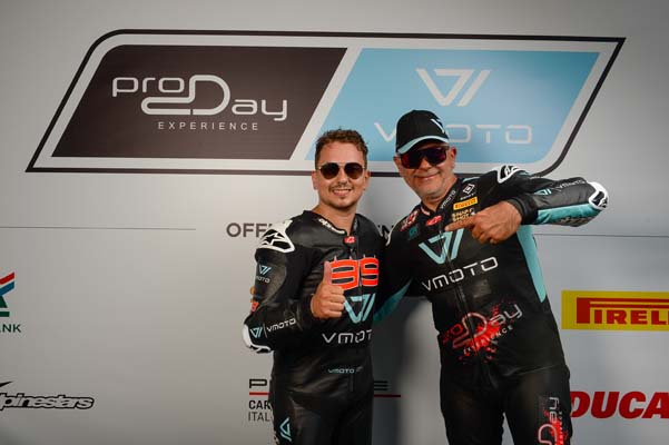 Jorge Lorenzo, Testimonial von Vmoto, wird mit Michele Pirro, Dario Marchetti, Marco Lucchinelli, Mattia Casadei, Emilio Zamora und vielen anderen bei der vierten Ausgabe des ProDay – Misano World Circuit „Marco Simoncelli“ 17-18 Juli 2024 – anwesend sein –