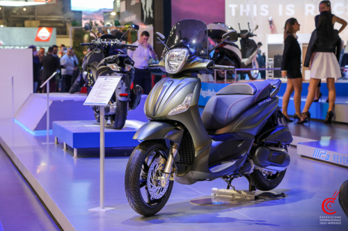 Piaggio Beverly 350 Tourer, nuova ammiraglia della gamma , ha di serie un pratico cupolino fumè e il capiente bauletto da 36 litri in tinta con il veicolo dotato di schienale in tinta con la sella. L’equipaggiamento comprende il sistema di connettività Piaggio MIA, grazie al quale è possibile collegare il proprio smartphone al veicolo via Bluetooth. È disponibile nella particolare tinta pastello dedicata Grigio Materia, abbinata a una sella nera con doppio rivestimento e a finiture argento cometa. L’allestimento è completato dai cerchi ruota verniciati in nero con bordo diamantato e dalle nuove targhette di colore nero.