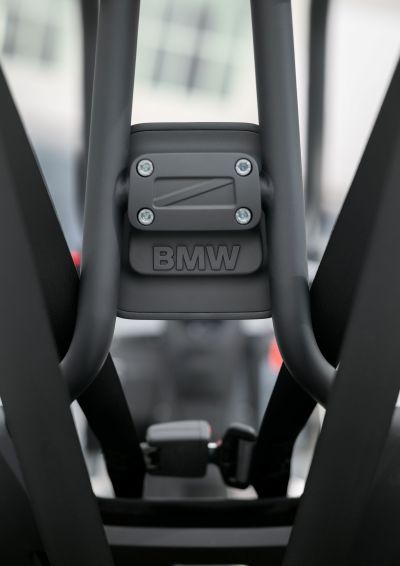La pièce maîtresse du BMW Motorrad Vision CE est son concept de sécurité : un composite de tubes métalliques appelé « cage ». Associé à une structure d’assise appropriée avec harnais de sécurité, il garantit une expérience de pilotage sûre et passionnante sans avoir besoin de casque ni même des équipements de protection obligatoires sur les autres deux-roues.
