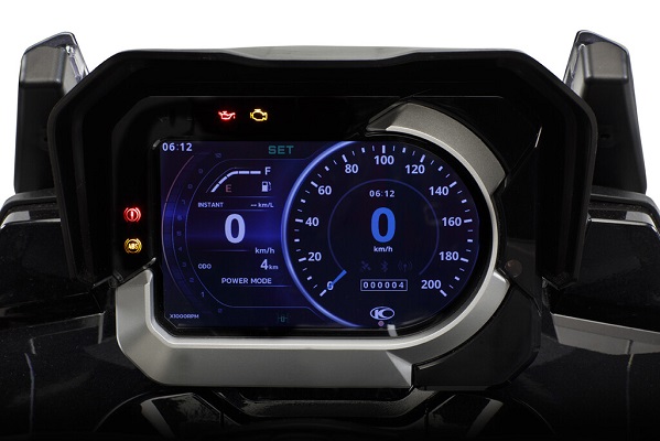 Le Kymco est équipé, entre autres, d’un écran LED inclinable, d’un régulateur de vitesse, d’une navigation et d’une connectivité smartphone, de poignées chauffantes, d’un pare-brise réglable et d’un système anti-patinage ainsi que d’un système de démarrage sans clé.
