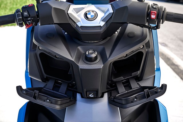 Le scooter de 204 kg affronte en toute sécurité les changements rapides de trajectoire ; dans les virages, précision et stabilité sont de mise, comme les motos de cette classe. Même discours pour les freins qui, selon BMW, offrent des temps de freinage plus courts que la super sportive S1000 RR. L’ABS et le contrôle de stabilité sont de série. De même, en ce qui concerne l’ergonomie, tout (ou presque) est parfait. L’accès n’est pas plat mais la posture de conduite, droite, sur une selle bien rembourrée et à double niveau, est confortable. Derrière le petit pare-brise non réglable en hauteur, la protection contre les intempéries est suffisante.