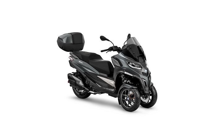 Le Piaggio MP3 530 hpe dispose d’un équipement très recherché, avec quatre couleurs semi-mates – Blu Oxygen mat, Grigio Titanio, Nero Meteora et Grigio Cloud mat – associées à des détails raffinés de couleur bronze sur les jantes, le couvercle de la boîte de vitesses et les surpiqûres de la selle.