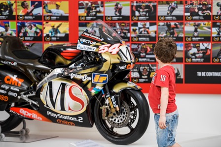 Nomi che hanno fatto la storia della motocicletta e che insieme collezionano lo straordinario palmares di 104 Titoli Mondiali nelle varie specialità del motociclismo sportivo. Dalle macchine eroiche del 1909 (anno di fondazione Gilera) o del 1921 (nascita di Moto Guzzi) si arriva alle straordinarie Aprilia di Valentino Rossi, Max Biaggi, Loris Capirossi, Manuel Poggiali, tutte vincitrici di Campionati del Mondo.