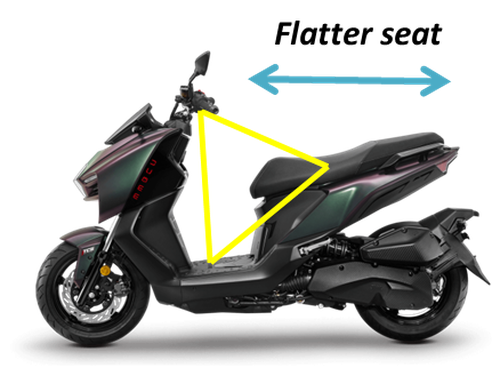 Ergonomia per il turismo – Il reparto R&S di SYM ha applicato al Mamba-MMBCU la superba ingegneria ergonomica dei maxiscooter SYM. La posizione di guida ottimizzata, il pianale allungato e la schiuma ad alta densità della sella sono le caratteristiche chiave per i viaggi a lunga distanza.