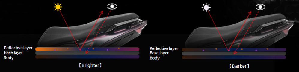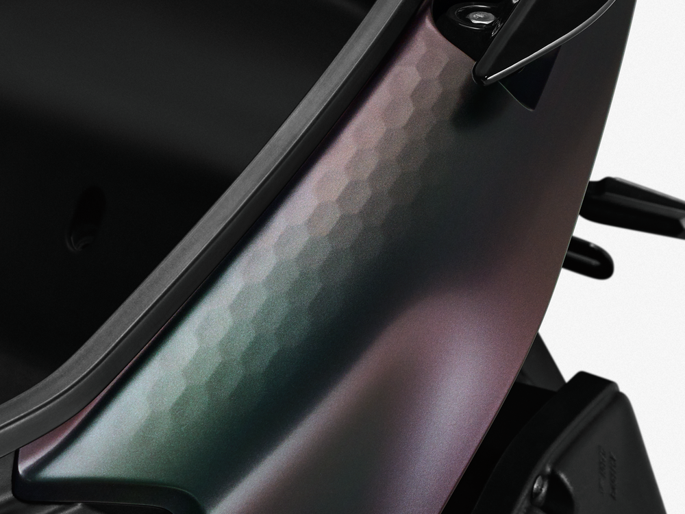 Rivestimento multistrato – La nuova tecnica di verniciatura adottata (non per tutte le colorazioni) fa apparire i colori diversi a seconda della luce ambientale, proprio come i serpenti mamba che si adattano a diversi ambienti.