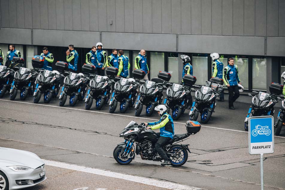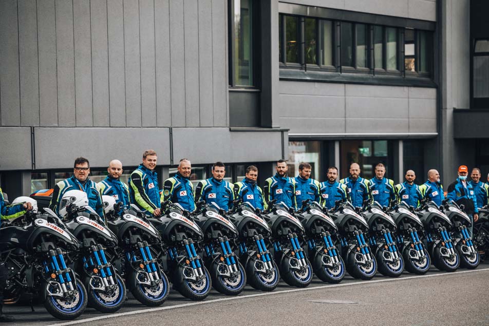 Per l’attuale TdS , 40 Yamaha NIKEN nuove di zecca sono pronte all’uso. L’unica motocicletta a con guida speciale a doppia ruota anteriore e una tecnologia brevettata di inclinazione in grado di offrire più tenuta e quindi più sicurezza.