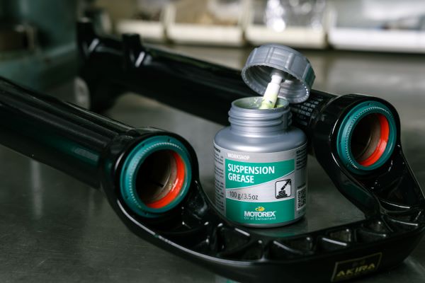 Langenthal (CH), settembre 2024 – Con il nuovo Suspension Grease, Motorex presenta un grasso speciale per la lubrificazione degli anelli di tenuta delle forcelle, dei puntoni e degli ammortizzatori delle biciclette. Per i professionisti delle officine e per i ciclisti esperti nella manutenzione delle biciclette, Suspension Grease è un grasso di montaggio di alta qualità con molti interessanti vantaggi.