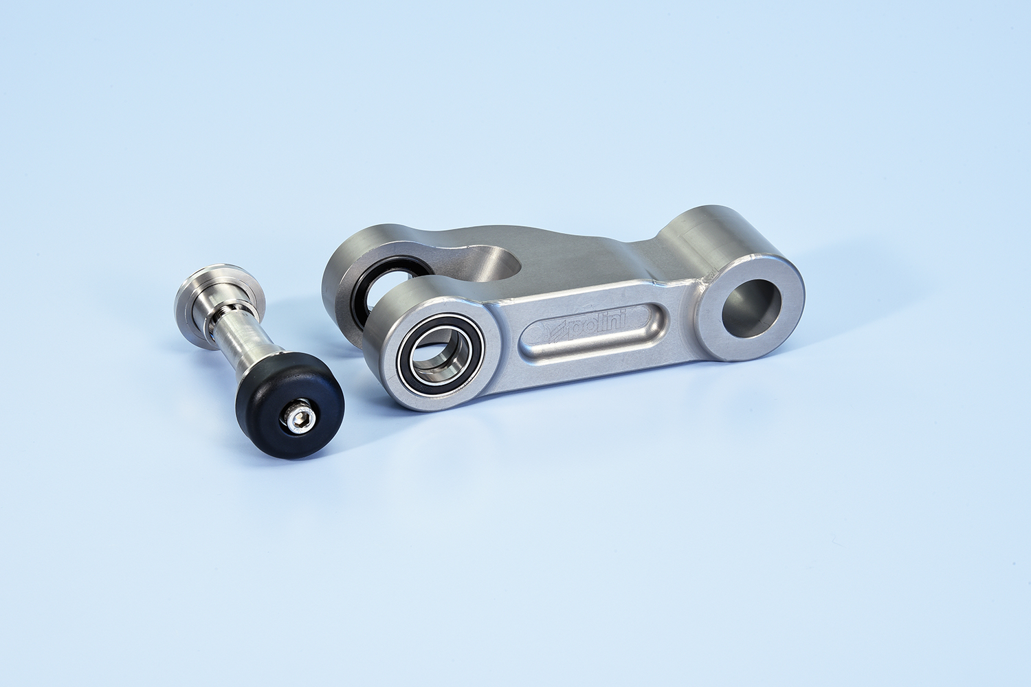 È ricavato dal pieno in alluminio Anticorodal anodizzato con lavorazione su fresa CNC 5 assi, concentricità ed interassi di altissima precisione. Ha 4 cuscinetti a sfere premontati nel braccio oscillante per garantire costante rotolamento e carico dinamico debitamente sovradimensionato con perni per fissaggio forcella in acciaio AISI303 che assicurano un giusto grado di anticorrosione e pomelli plastici paracolpi sia su biscotto che su perno ruota. Il perno forcella a cuscinetti semplifica il lavoro di montaggio rispetto al perno originale con gabbie a rulli. La sagoma esterna è studiata per poter alloggiare ammortizzatori di diverso diametro con distanziali fra i cuscinetti debitamente scaricati per agevolare l’eventuale smontaggio degli stessi e perno ruota di facile montaggio senza attrezzature. 100% Made in Italy. Polini codice: 050.2660.