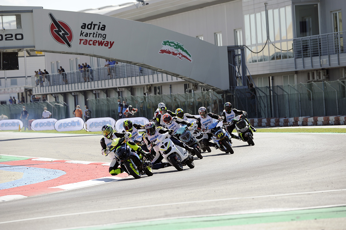 Nel secondo round 2020 del tricolore scooter Polini Italian Cup, corso sul kartodronmo di Adria (RO), la gara della Scooter 70 Evolution SuperSport è risultata un vero e proprio trionfo per il nutrito gruppo dei piloti sloveni. L’equipe slovena quest’anno è notevolmente cresciuta sia a livello agonistico, ottimizzando al meglio l’esperienza acquisita nelle ultime stagioni, che tecnico, dimostrando di avere fatto un netto balzo in avanti utilizzando tutta la componentistica racing Polini per i propri scooter Yamaha Jog. Vittoria a sorpresa nella Scooter 70 Evolution Amatori per Matteo Belardinelli, che ha portato al successo un Malaguti Phanton replicando così le due vittorie ottenute nel 2016 da Emilio Maione sulle piste di Viterbo e Pomposa.