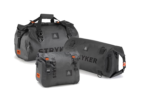 La collezione Stryker dà il benvenuto a tre interessanti new entry: la borsa a rullo impermeabile ST102W, il borsone da sella ST103W e la pratica borsa cargo ST104W. Ad accomunare tutti i modelli sono i materiali tecnici e la presenza di cinghie regolabili per un rapido fissaggio al veicolo.