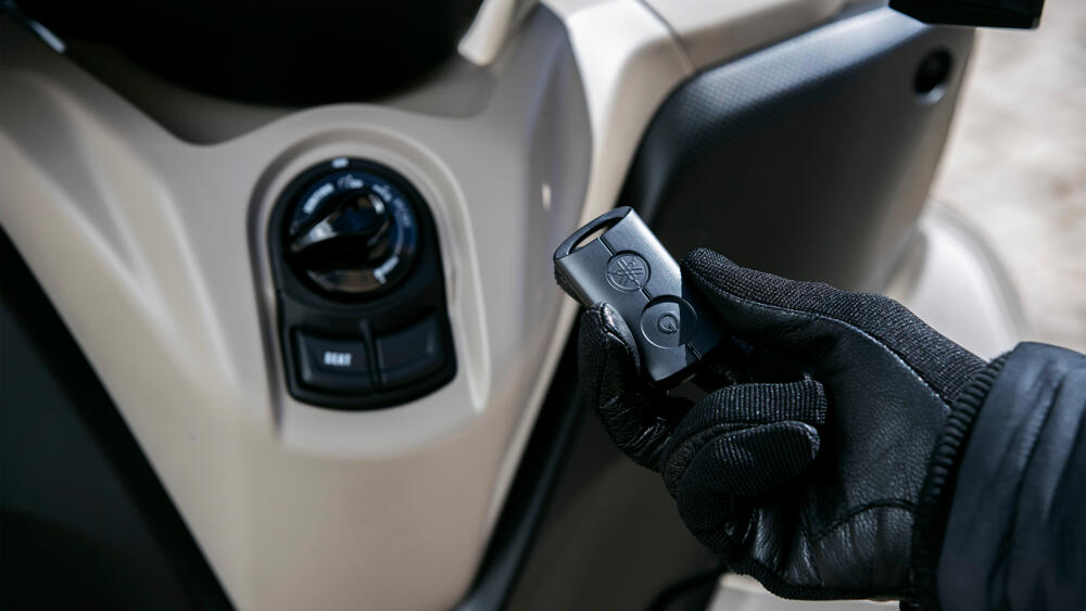 Per una maggiore praticità, il Tricity 125 può essere azionato senza chiave ogni volta che il pilota porta la Smart Key con sé in tasca, nel portafoglio o in una borsa. La moto rileva la presenza della Smart Key e permette al pilota di accendere e spegnere l’alimentazione, avviare il motore, sbloccare il manubrio e aprire la sella. È una funzionalità piccola, ma utile, che contribuisce a rendere la guida più piacevole.